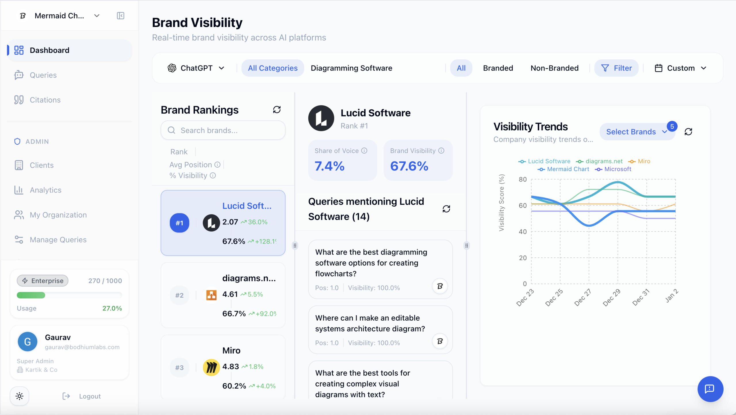 Our proprietary database of 13.8 billion questions asked across the Internet by real customers gives us unparalleled insight into how AI systems interpret, perceive, and recommend brands. This is the foundation of everything we do.
